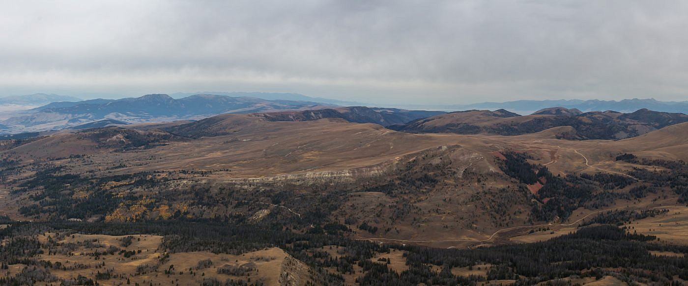 Looking west from the summit. The Snowcrest Range, in the distance, is arguably one of the most remote mountain ranges in the state. There are no easy access points which makes its highpoint, Sunset Peak (10,581′), exceptionally difficult to reach.